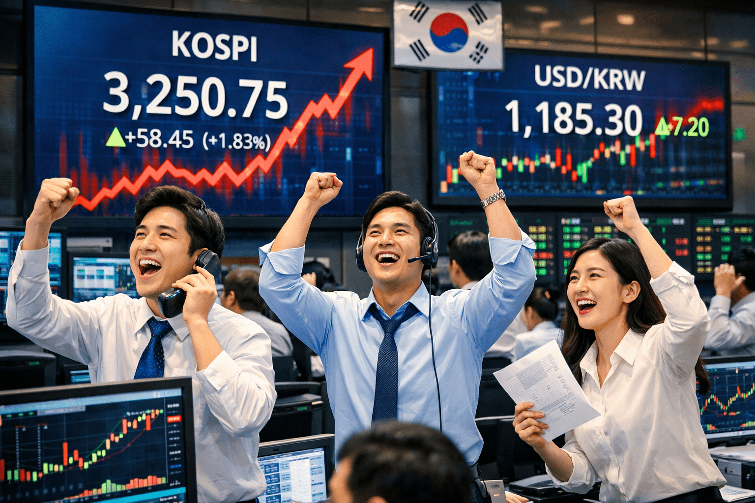 Most South Korean stocks jumped on Monday. Samsung shares rose by 1.85%, while SK Hynix jumped by 0.85%. Other top gainers were companies like Samsung Life Insurance, HD Hyundai Electric, Samsung Electro-Mechanics, and Hyosung Heavy Industries. LG Electronics soared by 10%.